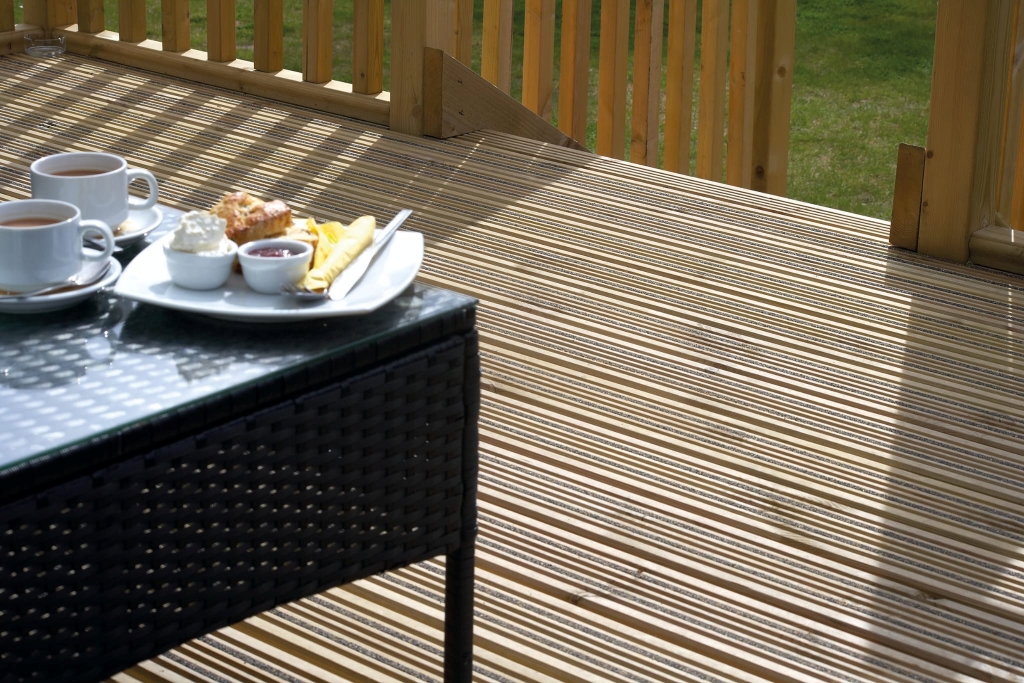 Innovative non-slip decking from Severn Valley Woodworks using the latest anti-slip technology creating a deck that even works through snow and ice, ensuring safe use all year round.